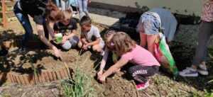 A 2022/2023-es tanévben Pókaszepetki Festetics Kristóf Általános Iskolában a pályázatnak köszönhetően tovább folytattuk az iskola kertjében a munkát. Az ősz folyamán betakarítottuk a növények terméseit, előkészítettük az ágyásokat a téli pihenő időszakra. Decemberben Luca búzát vetettünk. A gyerekek hoztak búzaszemeket, 100 db -ot leszámoltunk, s egy cserépbe elvetettük. A téli szünet előtt ki is kelt a búza, s a szünet után hatalmasra nőve rácsodálkoztak a tanulók. „Megjósoltuk belőle a termést”, ahogy a népi megfigyelésből tudjuk. A jó idő beköszöntével az alsó tagozatos gyerekekkel elkezdtük a tavaszi munkákat. Iskolánk udvarának barátságosabbá tételéhez készítettünk két cserép babát, amit kifestettünk, s növényekkel be is ültettünk. A gyerekek segítségével el is neveztük őket. A lány Póka Panna, a fiú Póka Peti lett. A Mini-gazdakertünkben elvetettük a kapott magokat, hagymákat. A kora tavaszi időszakban először sárgarépa, petrezselyem, retek, cékla magokat illetve lila és vöröshagyma dughagymákat helyeztünk a földbe.